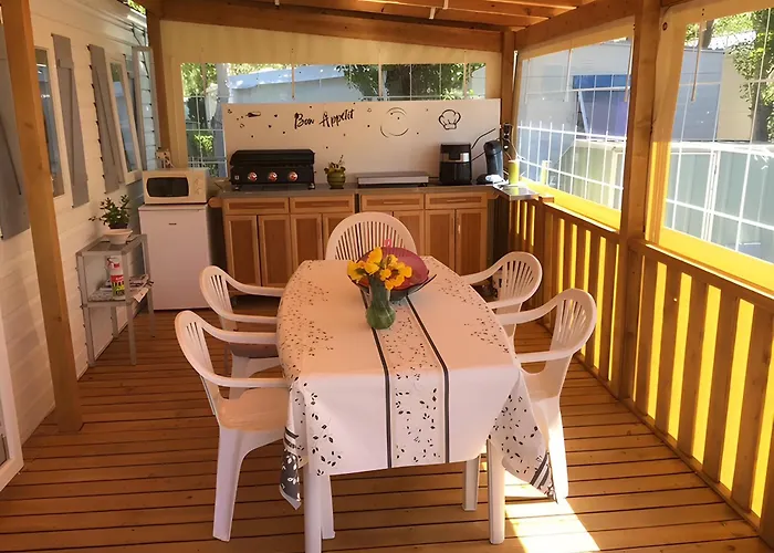 Situated 4.1 km from the Casino Barrière, Location Mobilhome Agde villa invites guests to relax at a patio.